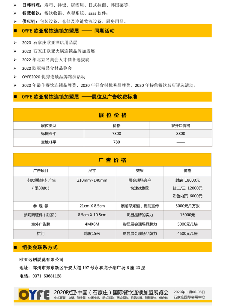 2020欧亚·中国(石家庄)国际餐饮连锁加盟展览会邀请函